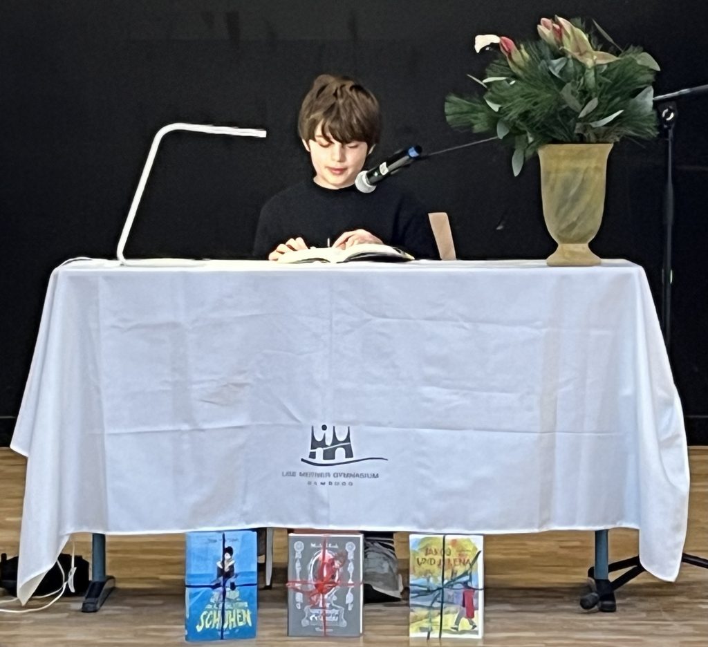 Freitag, 21. November,12 Uhr: Draußen schien bei herrlichem Winterwetter mit frostigen Temperaturen die Sonne und im Forum des Lise-Meitner-Gymnasiums lasen die Klassensiegerinnen und -sieger des sechsten Jahrgangs vor einer fünfköpfigen Jury und im Kreise ihrer Klassenfreunde, um die Schulsiegerin bzw. den Schulsieger zu küren.
