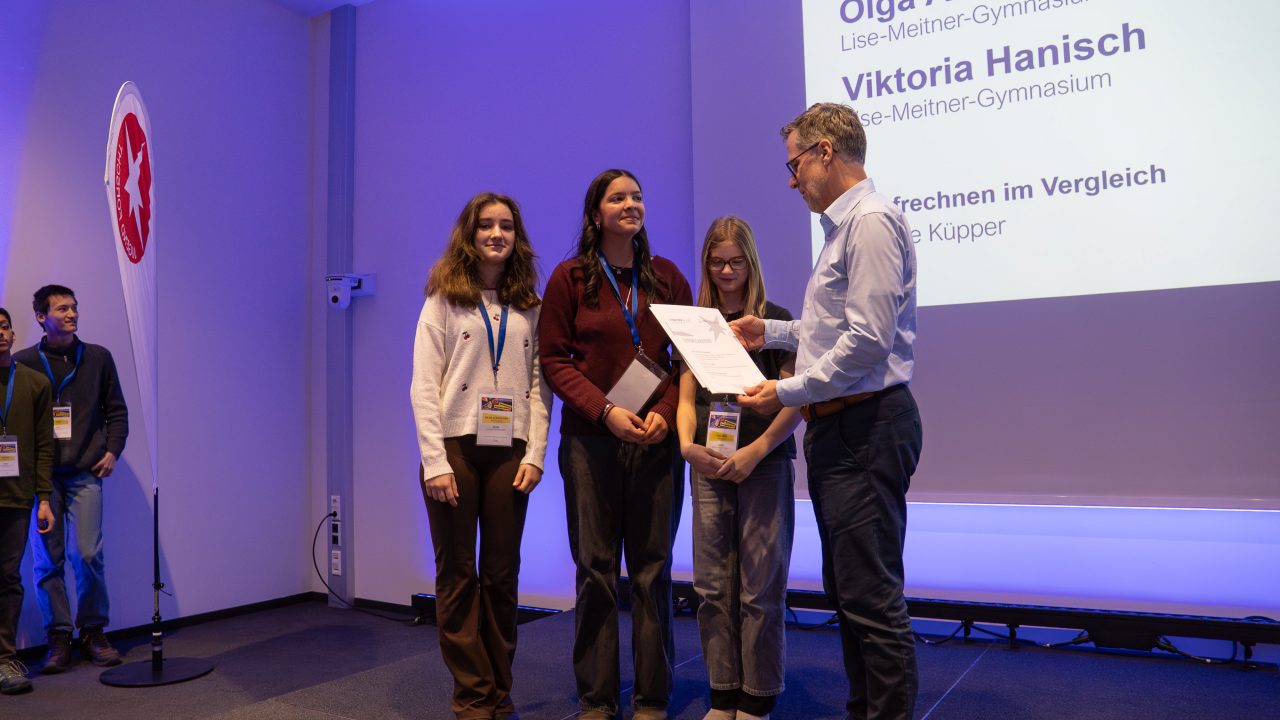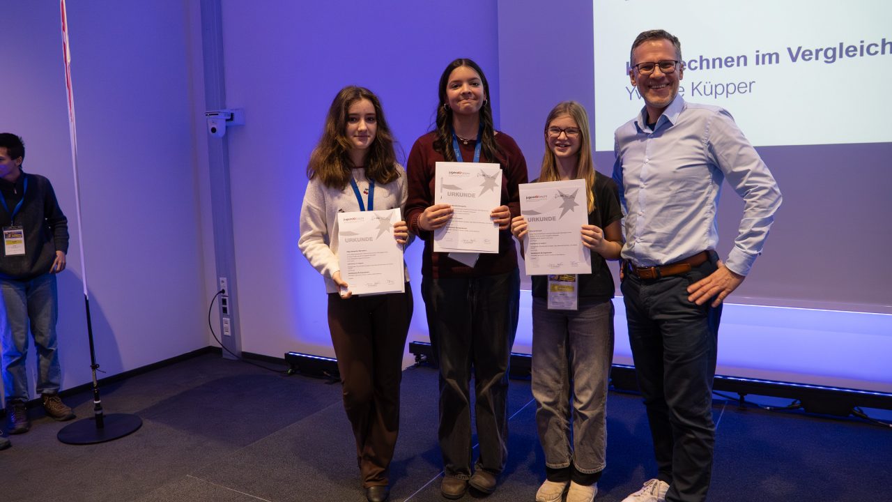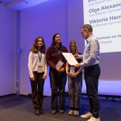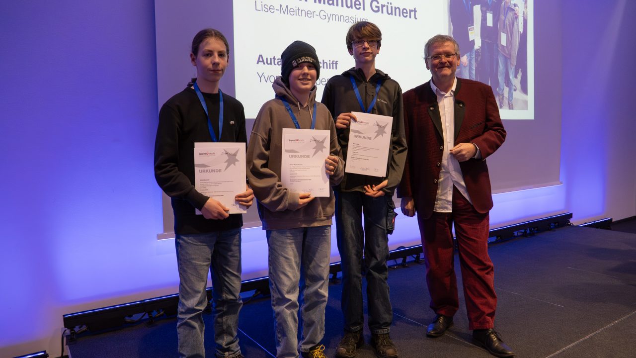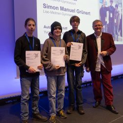 Ihre Projekte präsentierten die drei Gruppen am ersten Tag fachkundig vor ihren Fachjurys und auch am zweiten Tag in der öffentlichen Ausstellung. Die feierliche Preisverleihung ergab am Ende Sonderpreise für zwei Teams – für den ersten Anlauf eine respektable Leistung. Die Teams wurden von zwei Lehrkräften begleitet. Zusätzlich waren auch noch zwei Lehrkräfte in zwei Fachjurys tätig. Insofern war unsere Schule auf verschiedenen Ebenen präsent. Neue Projekte für das nächste Jahr werden bereits ins Auge gefasst.